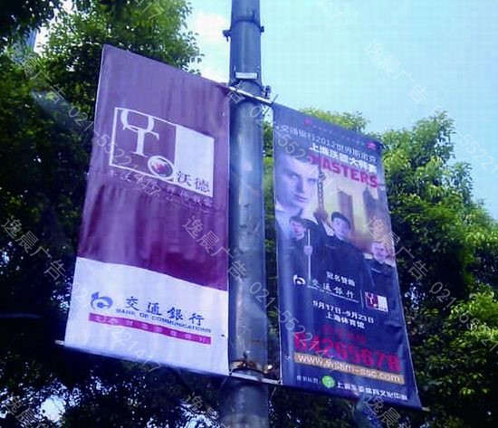道旗一般设置在活动场馆周边以及道路的主路、辅路、便道以外的范围。可以在短期内树立广告主品牌效果。尤于道旗自身的地利优势,长时间的冲击受众群体的视觉,通过每天的接触,在受众群体的潜意识中便树立了该广告的品牌意识,在短期的潜移默化中即能收到良好的宣传效果,迅速地提升了广告主品牌知名度,促进广告效益。具有宣传力度强劲有效,动感直观,整体感强等效果。