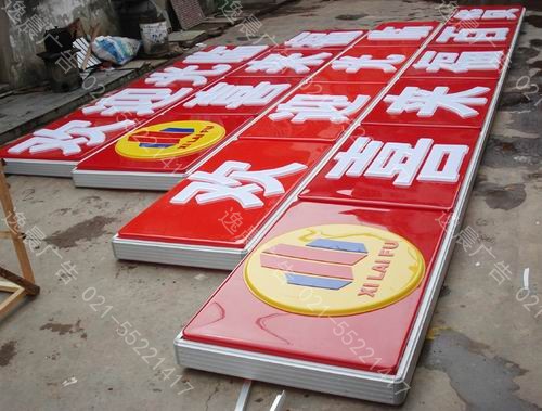 从跨国公司麦当劳、肯德基和必胜客,到国内的连锁超市、银行、解放商用车服务中心店招、无不孕育着广告制品标识的一个巨大的商机。压克力加工离不开模 具。模具可采用木制、石膏、钢制等,可根据加工批量的多少决定模具选材。木模节约成本,只适合小量加工,因为用久了会失水变形,成品自然不美观,也给后期 制作带来麻烦(需要处理)。吸塑灯箱和立体发光字的前期制作相同:制膜→加热(160度左右)→自动吸真空→冷却(40度左右) →脱膜→修边→加槽→立体发光字。(修边→粘接字与面板→块拼接→吸塑灯箱)。