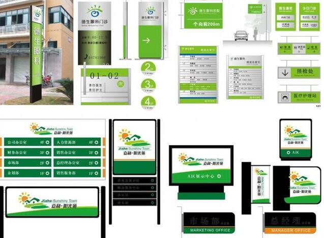 引导标识系统涉及的表现方式种类最多,简单的医院标识系统的项目可分为以下几个部分: