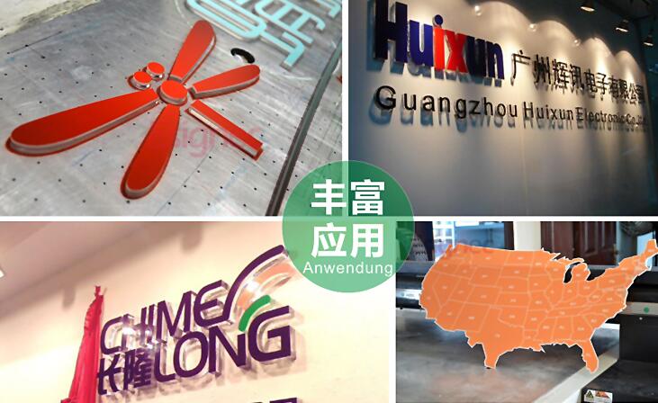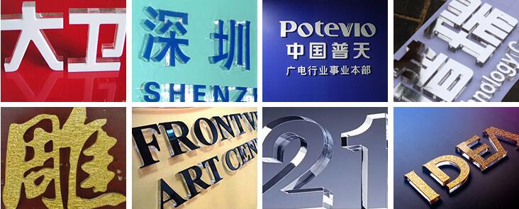 水晶字常用于专卖店展柜眉头字、公司logo墙、标牌广告、门头店招、等标识导向系统的制作。水晶字由灯光照射看起来非常好看,它可以用在室内和室外,不怕日晒雨淋。是一种性价比较高的高档字。可做招牌字,也可做其它装饰字。但它不能做得太大,一般小于1米,总厚度在5mm至21mm之间。公司LOGO墙一般做厚度为10mm的水晶字。
