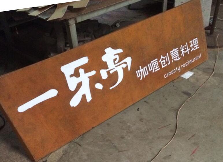 上一华体会体育:锈板老招牌,仿古做旧招牌制作,铁锈质感艺术招牌