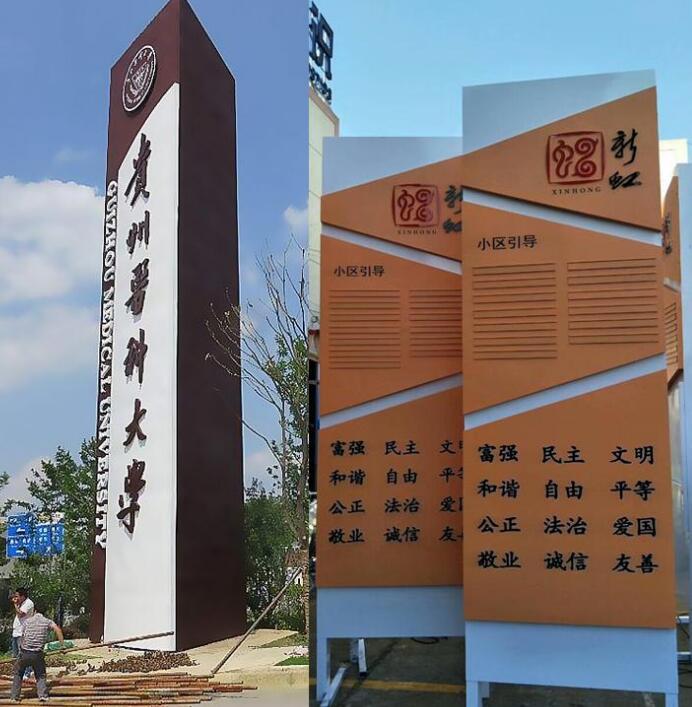 其设计风格及要求必须能充分表达企业的形象,文化及精神,更能给人在视觉上和信息传递上得到一种肯定。设计简约,工艺独特。导向牌标识所涉及的行业范围很广,如酒店,公司,企业,房产,商务楼,商业街,大型广场等等。制作材料主要用不锈钢,led灯,油漆,亚克力,钢管等作成,具体工艺因设计图纸而定。